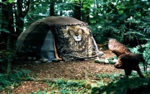Die Schwitzhütte besteht aus einem Geflecht von Stöcken und ist mit Decken zugedeckt. Dies symbolisiert den Schoss von Grossmutter Erde, dem urweiblichen Prinzip.